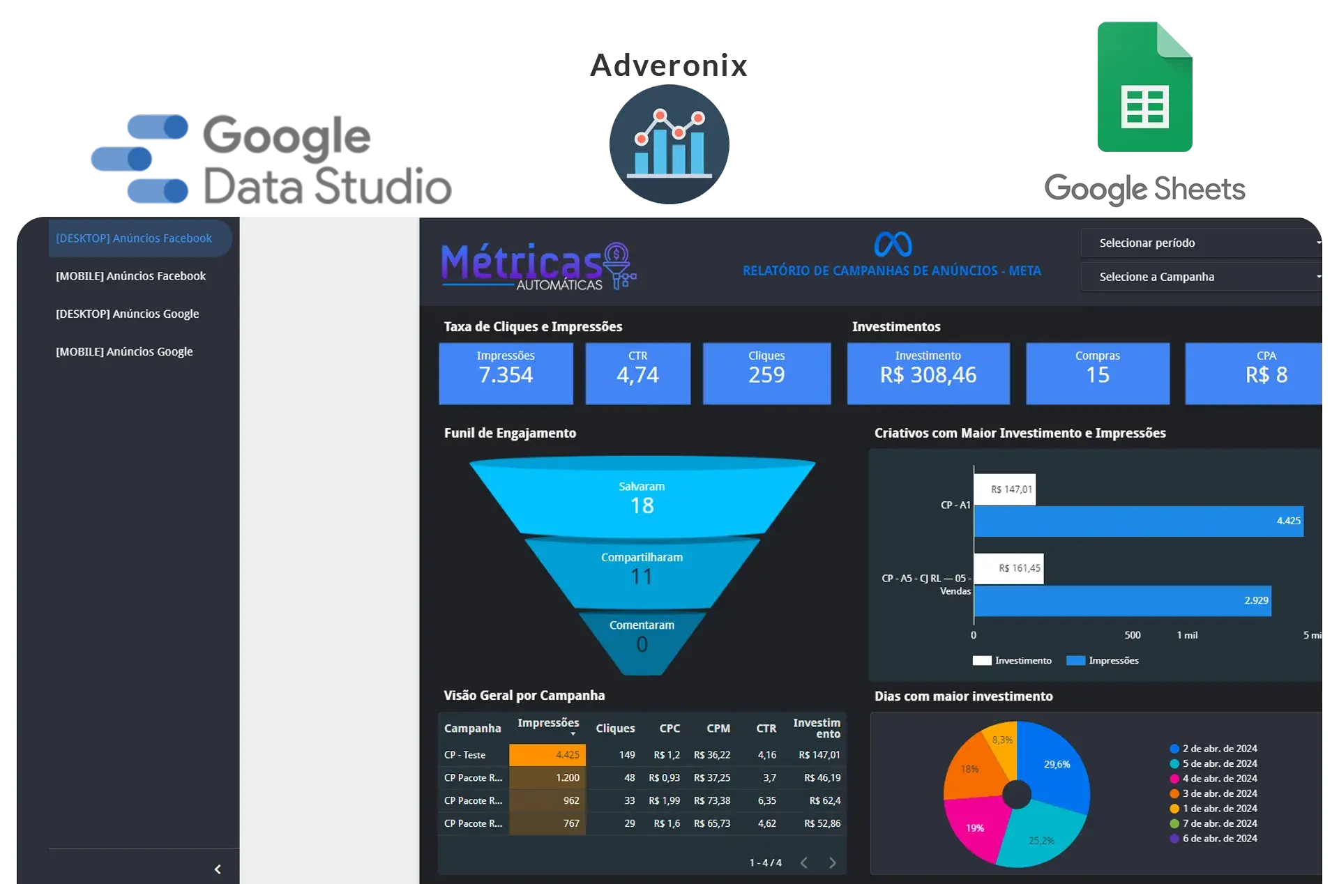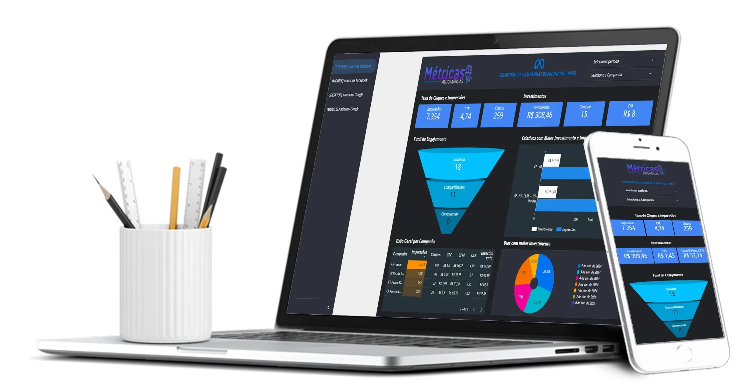 Integrado com Facebook ADS e Google ADS, te trazendo maior poder de análise e segurança na hora de analisar suas campanhas de anuncios.